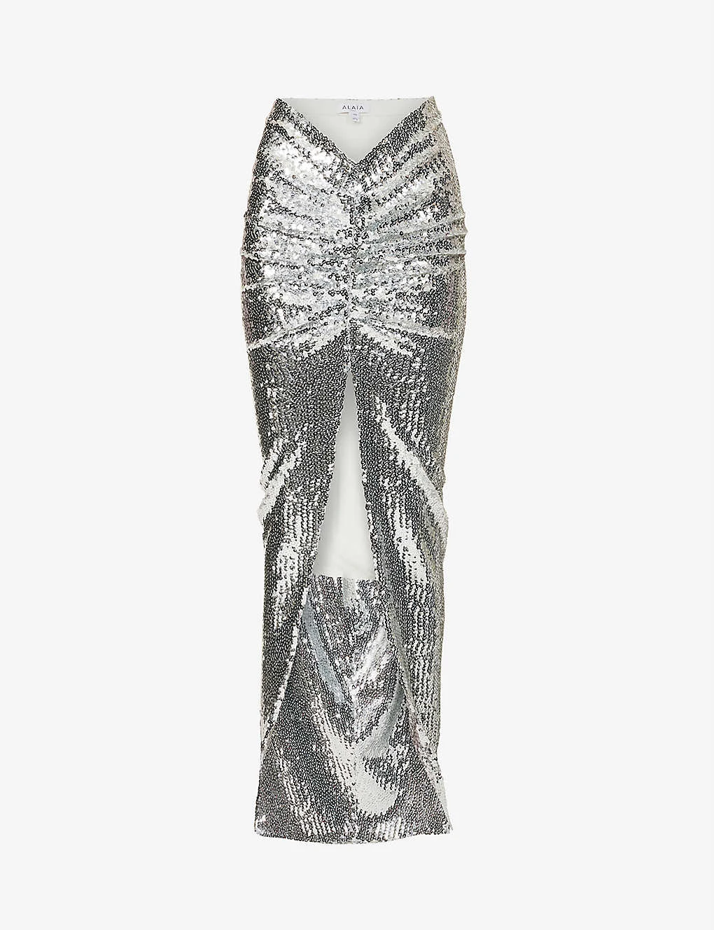 ALAIA Sequin-embellished Gathered Stretch-woven Maxi Skirt