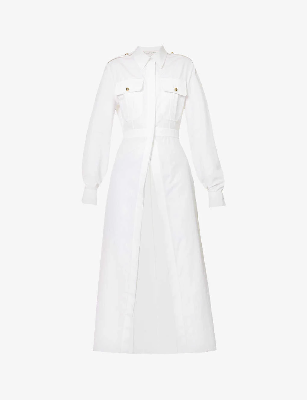 Alexander McQueen Flared-hem Pocket-embellished Cotton Shirt
