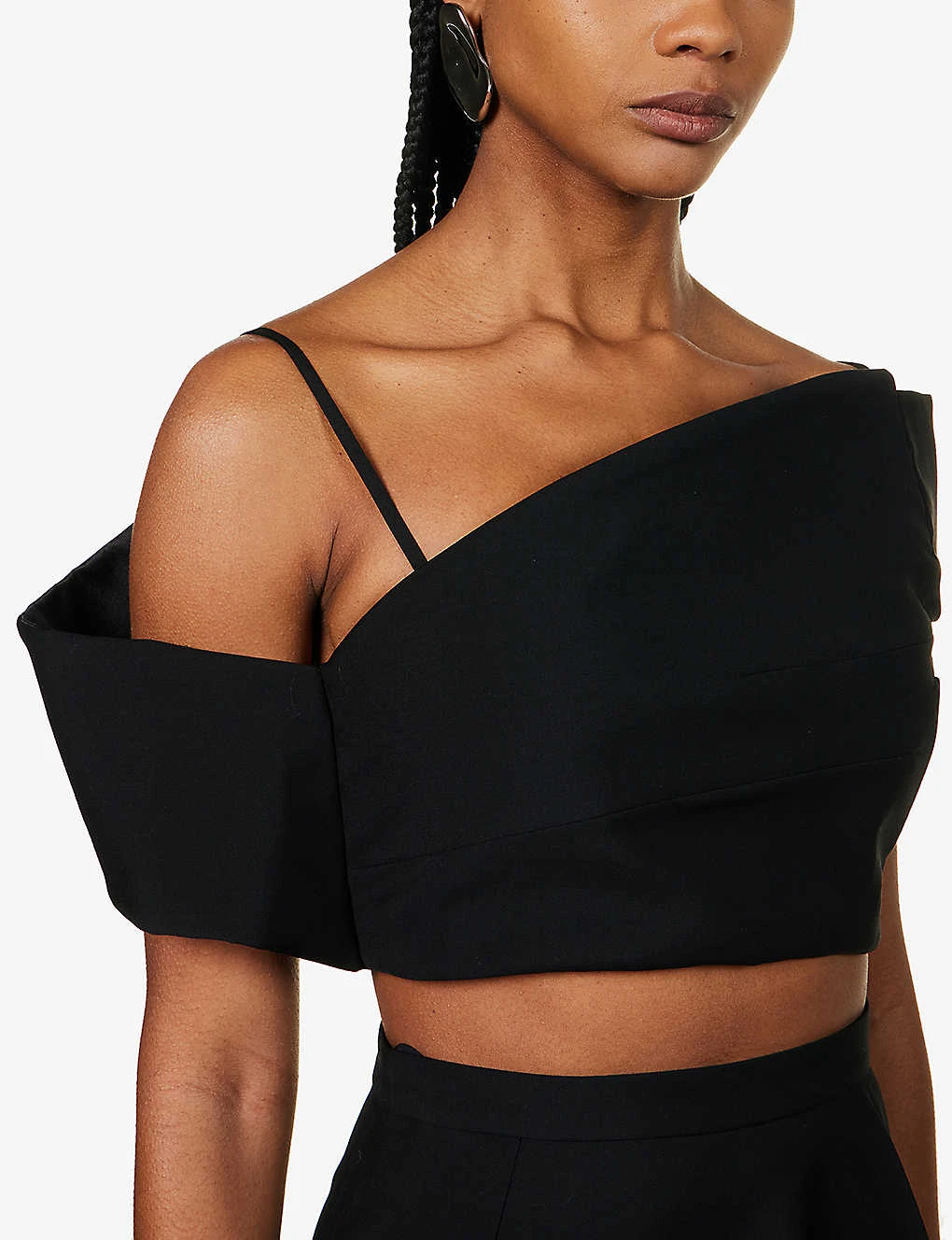 Be the first to review “Alexander McQueen Sliced Asymmetric-neckline Wool Top” Cancel reply