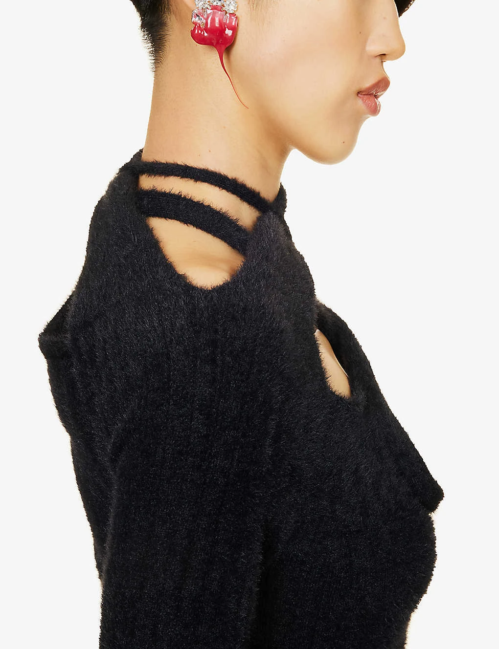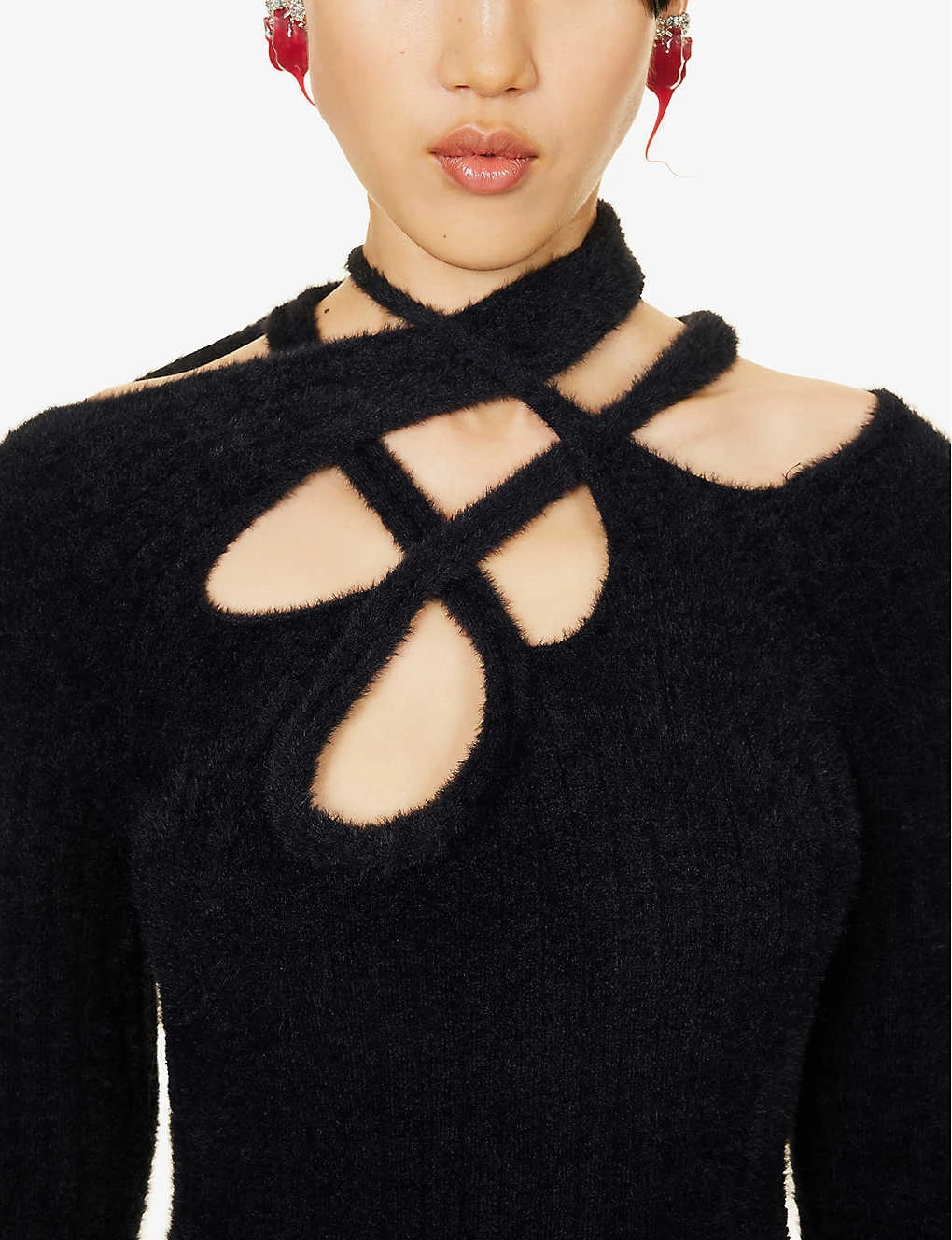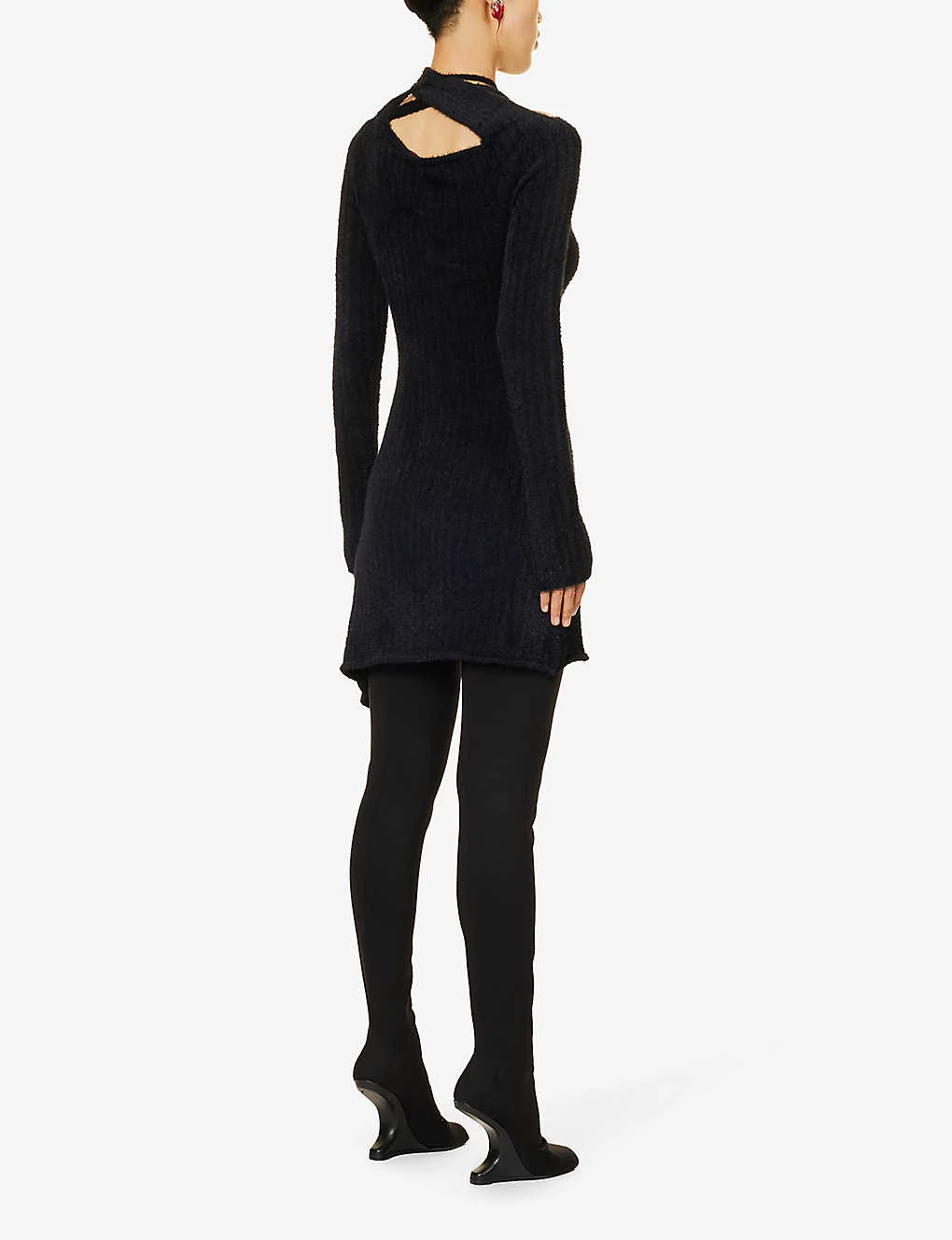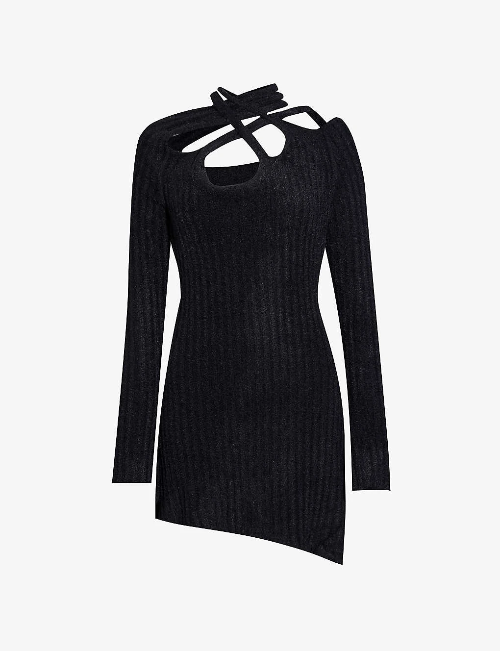 Asymmetric-neckline Brushed-texture Knitted Mini Dress