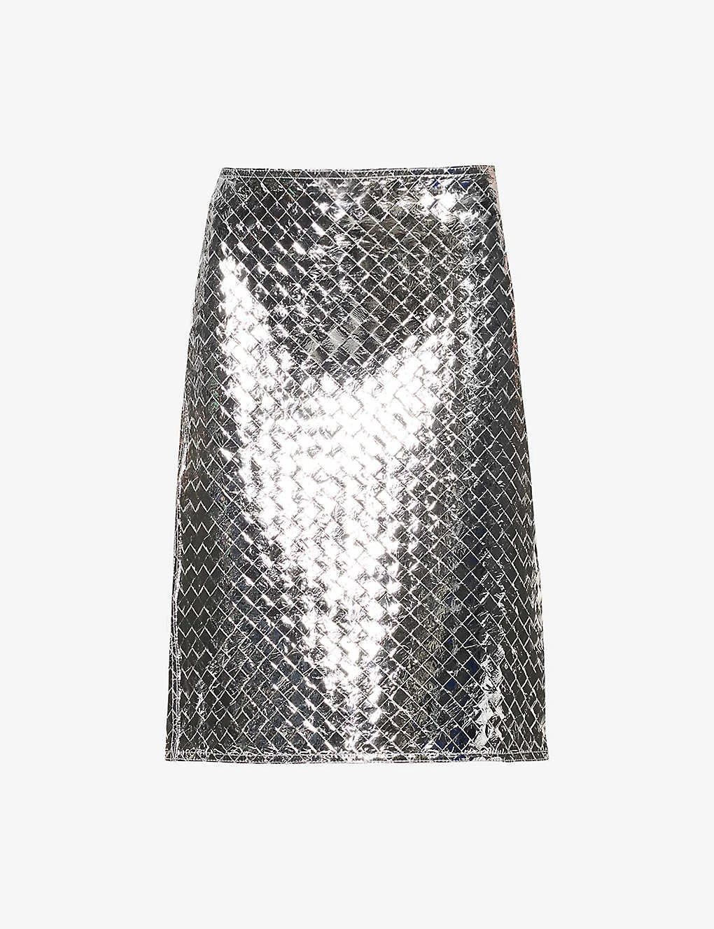 Bottega Veneta Intrecciato High-rise Leather Midi Skirt