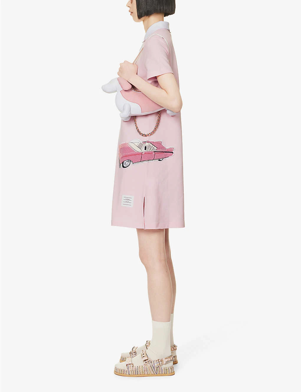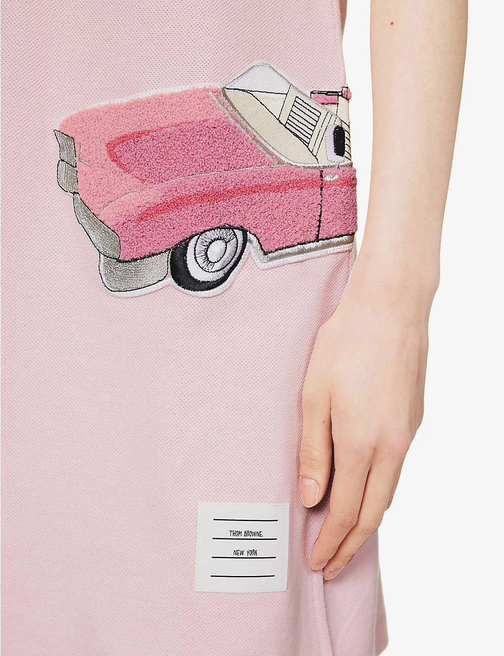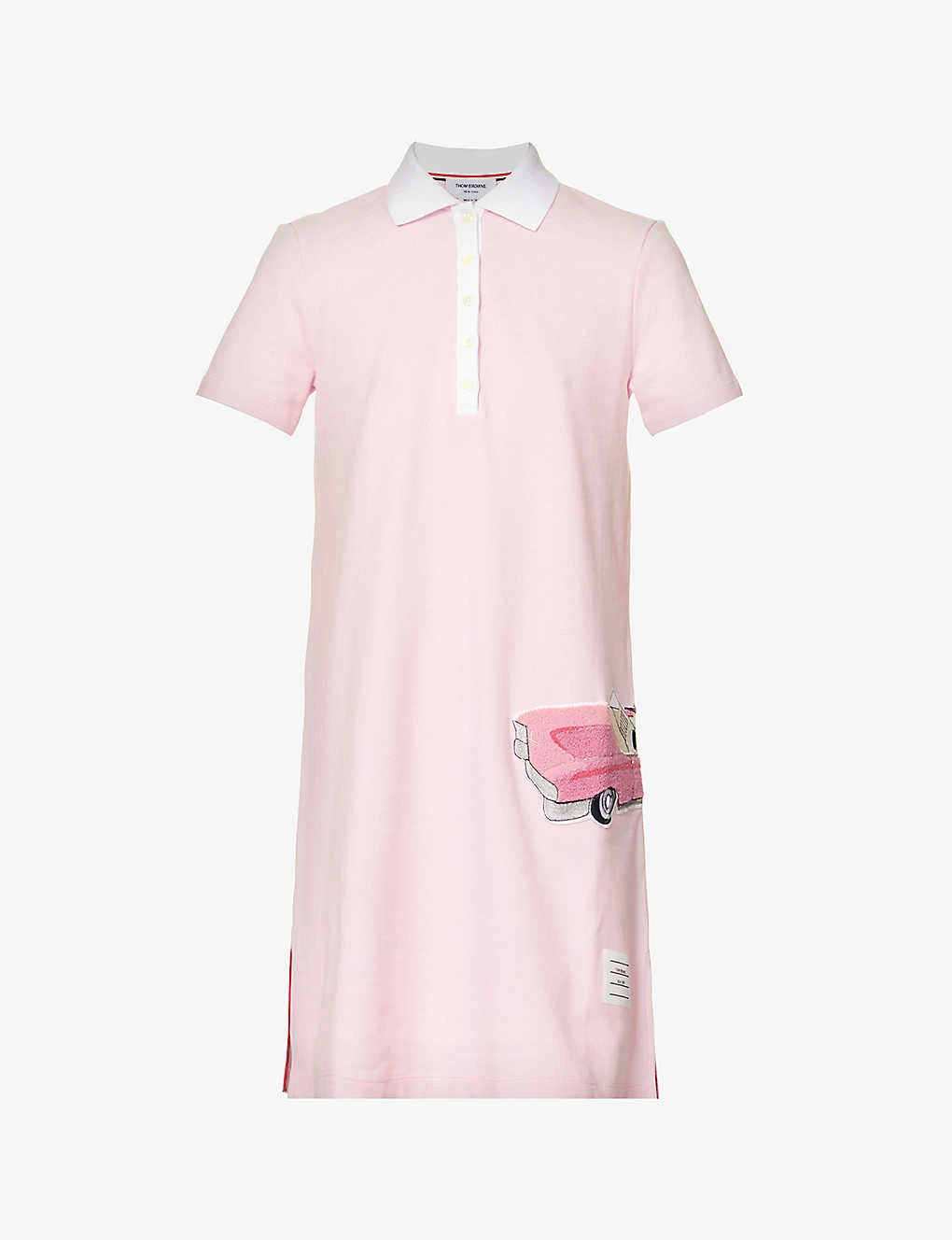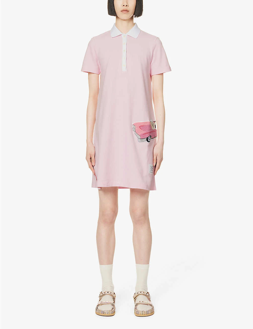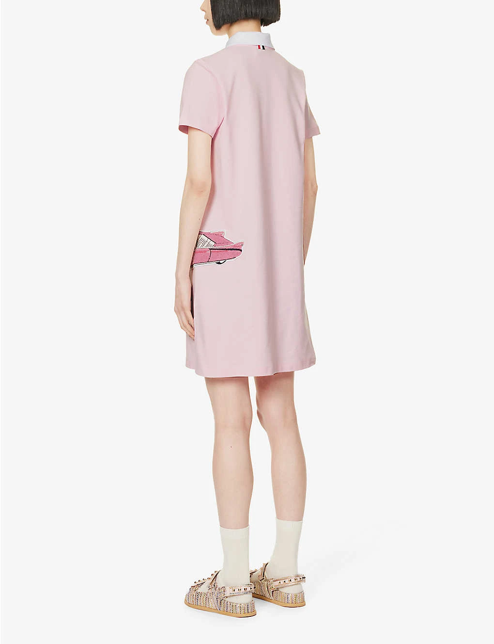 Car-appliquéd Polo-collar Cotton Midi Dress