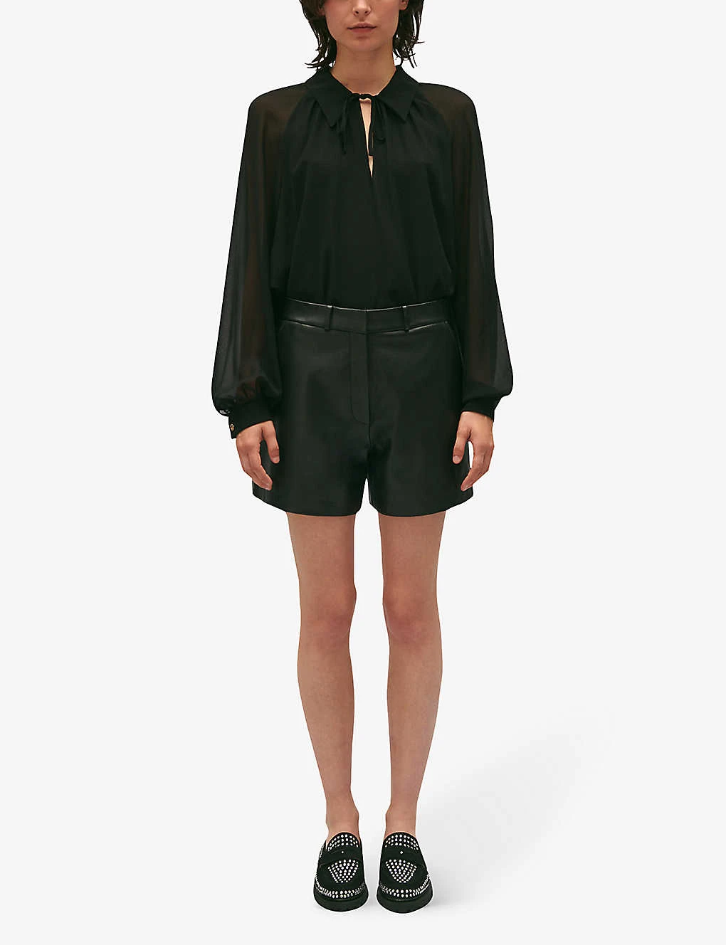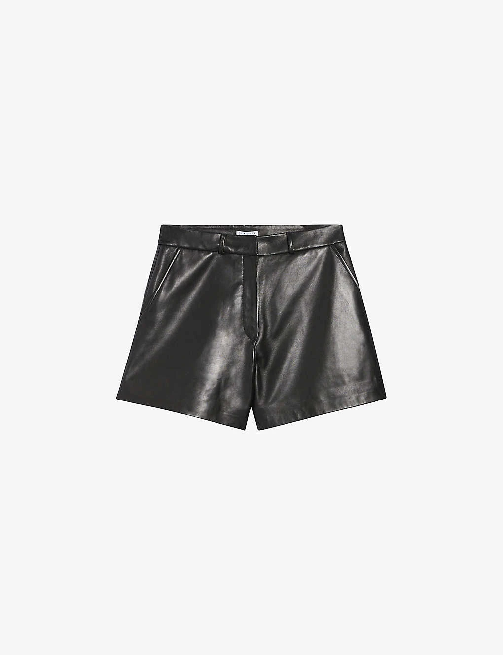 CLAUDIE PIERLOT Camille Mid-rise Straight-fit Leather Shorts