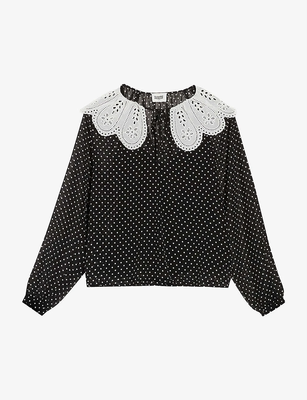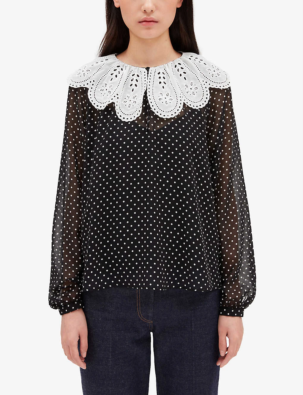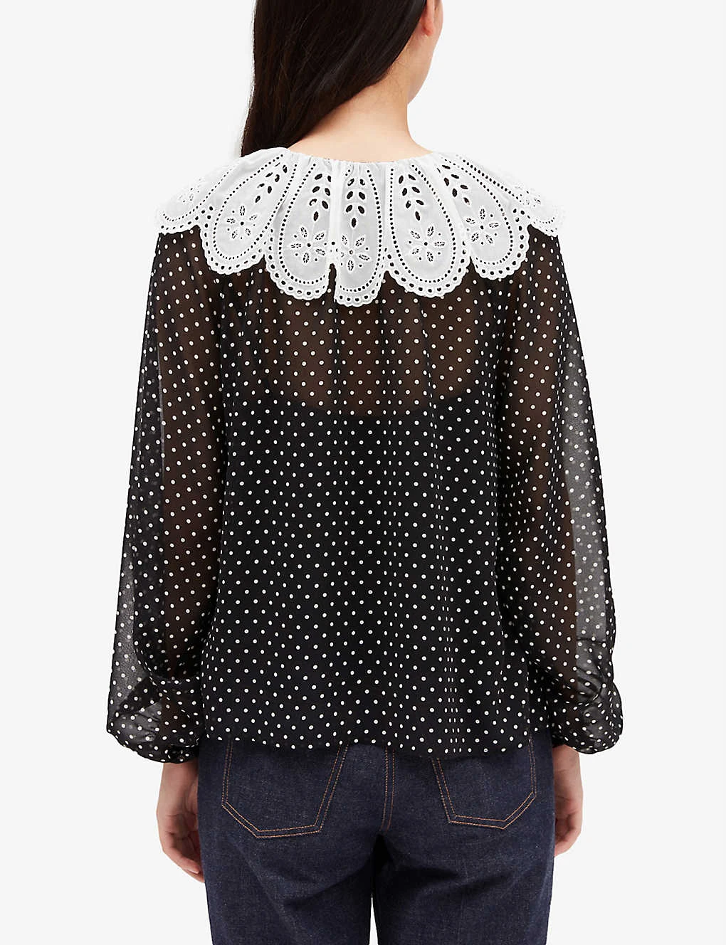 CLAUDIE PIERLOT Embroidered Collar Polka-dot Woven Blouse