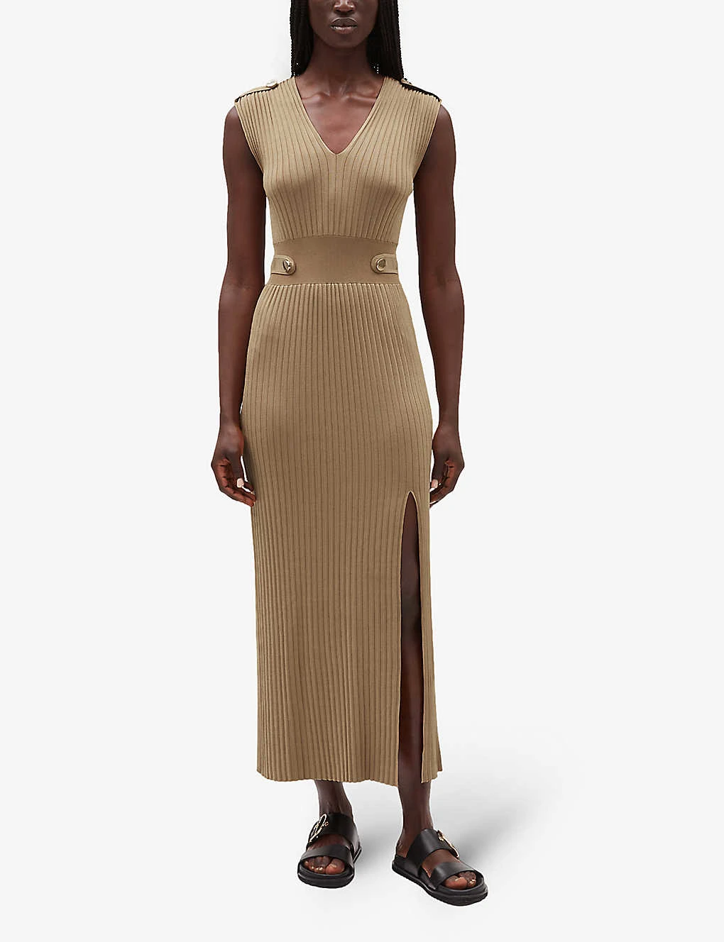 CLAUDIE PIERLOT Shoulder Epaulette Stretch Rib-knit Maxi Dress