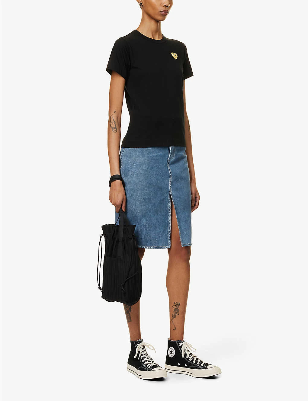 - Slim fit, round neckline, short sleeves, heart-shaped logo appliqué at chest, ribbed trims