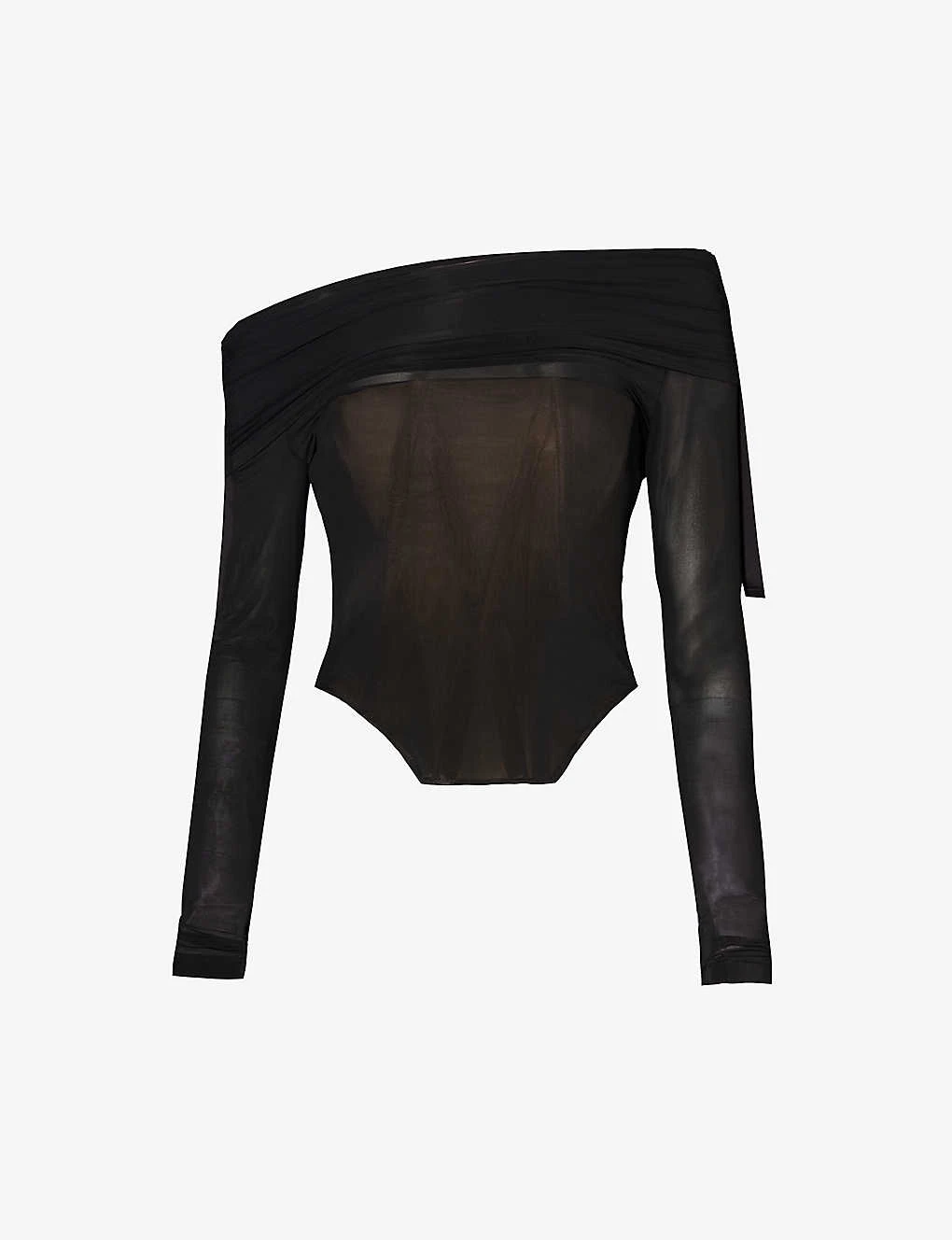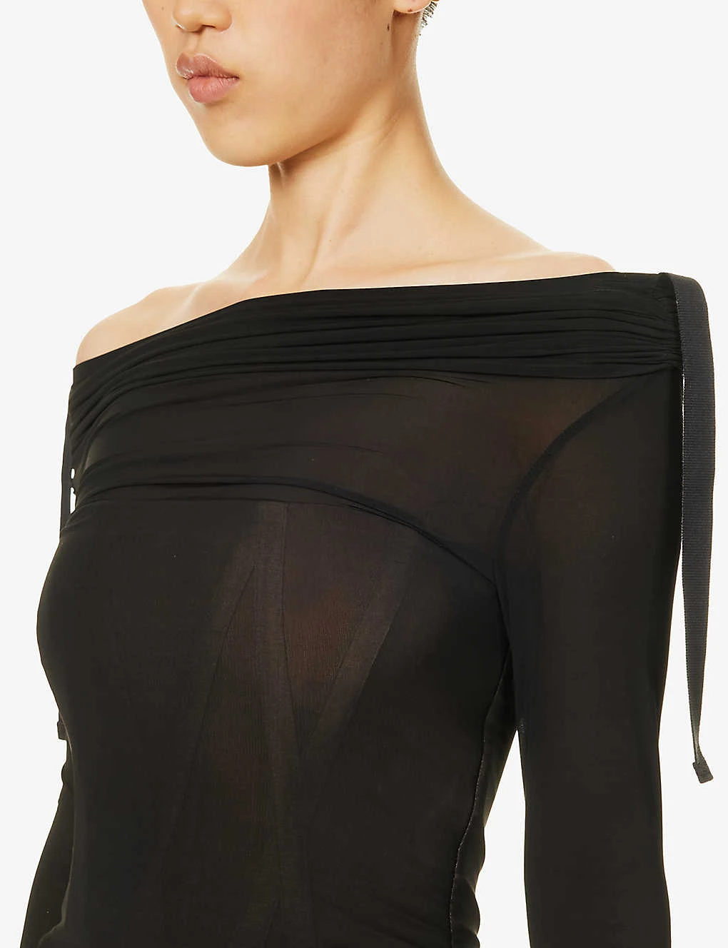 - Slim fit, gathered neckline, multiway neckline, long sleeves, corset bodice, jersey texture