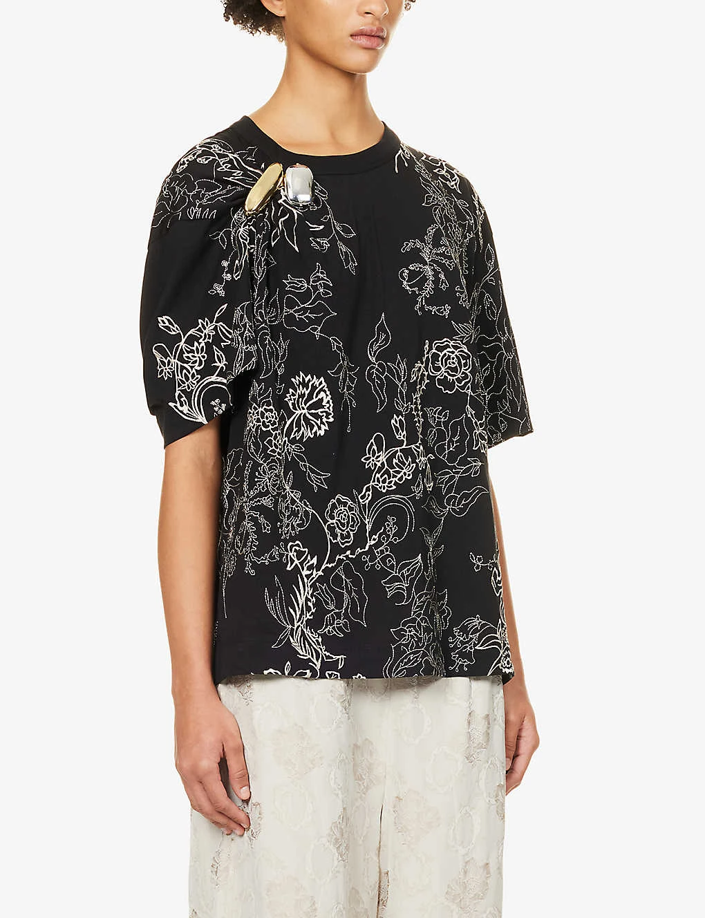 Dries Van Noten Brooch-embellished Floral-print Cotton T-shirt