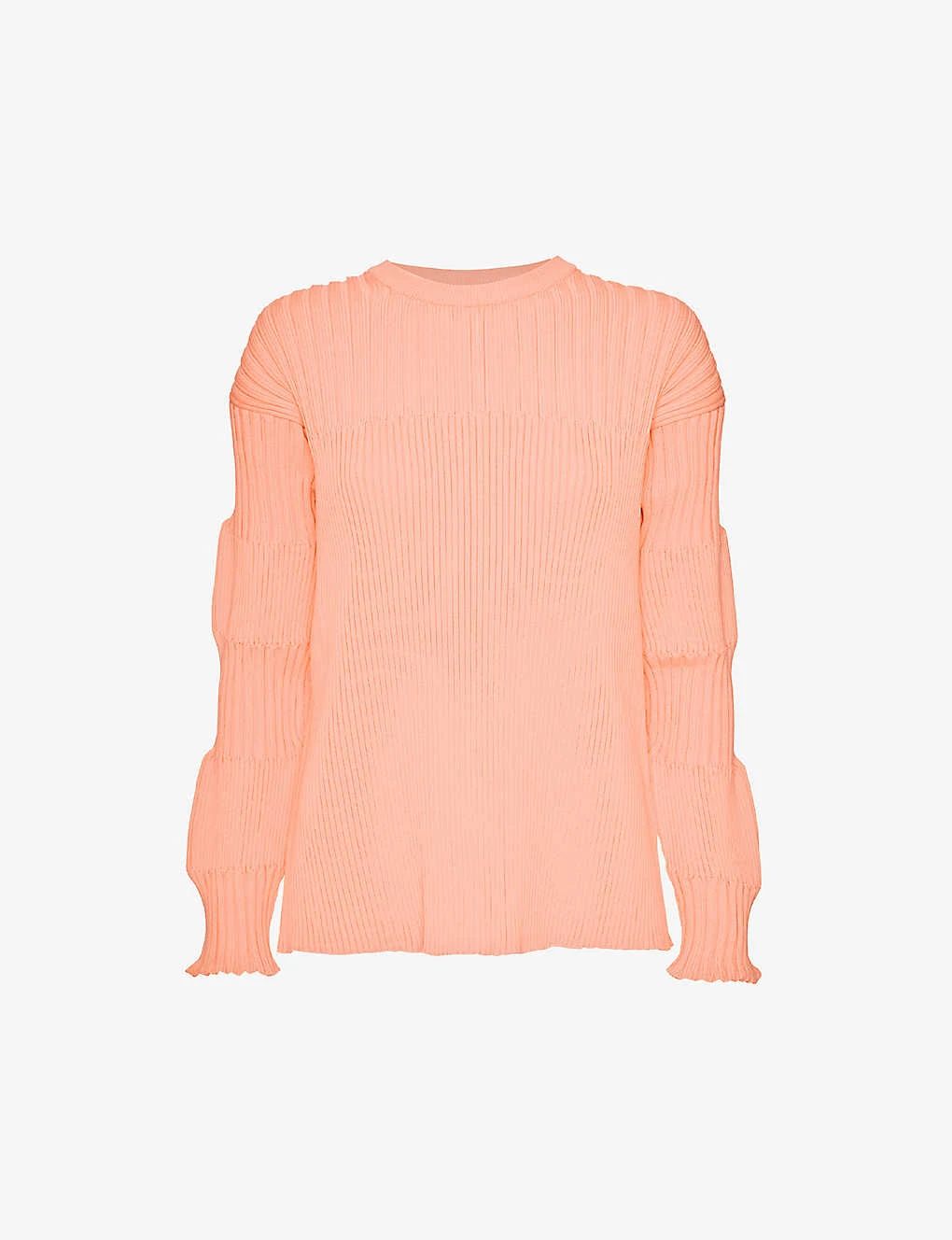 - Regular fit, round neck, ribbed trim at neck, long sleeves, all-over contrasting pleated panels