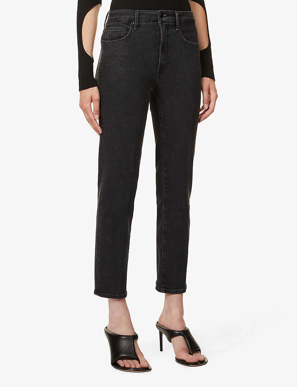 GOOD AMERICAN Good Straight Washed Straight-leg High-rise Stretch-organic-cotton Blend Denim Jeans