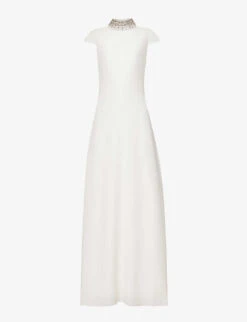 High-neck Crystal-embellished Woven Maxi Dress