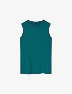 - Relaxed fit, round neck, sleeveless, dropped armholes, elasticated ribbed trims, semi sheer, straight hem