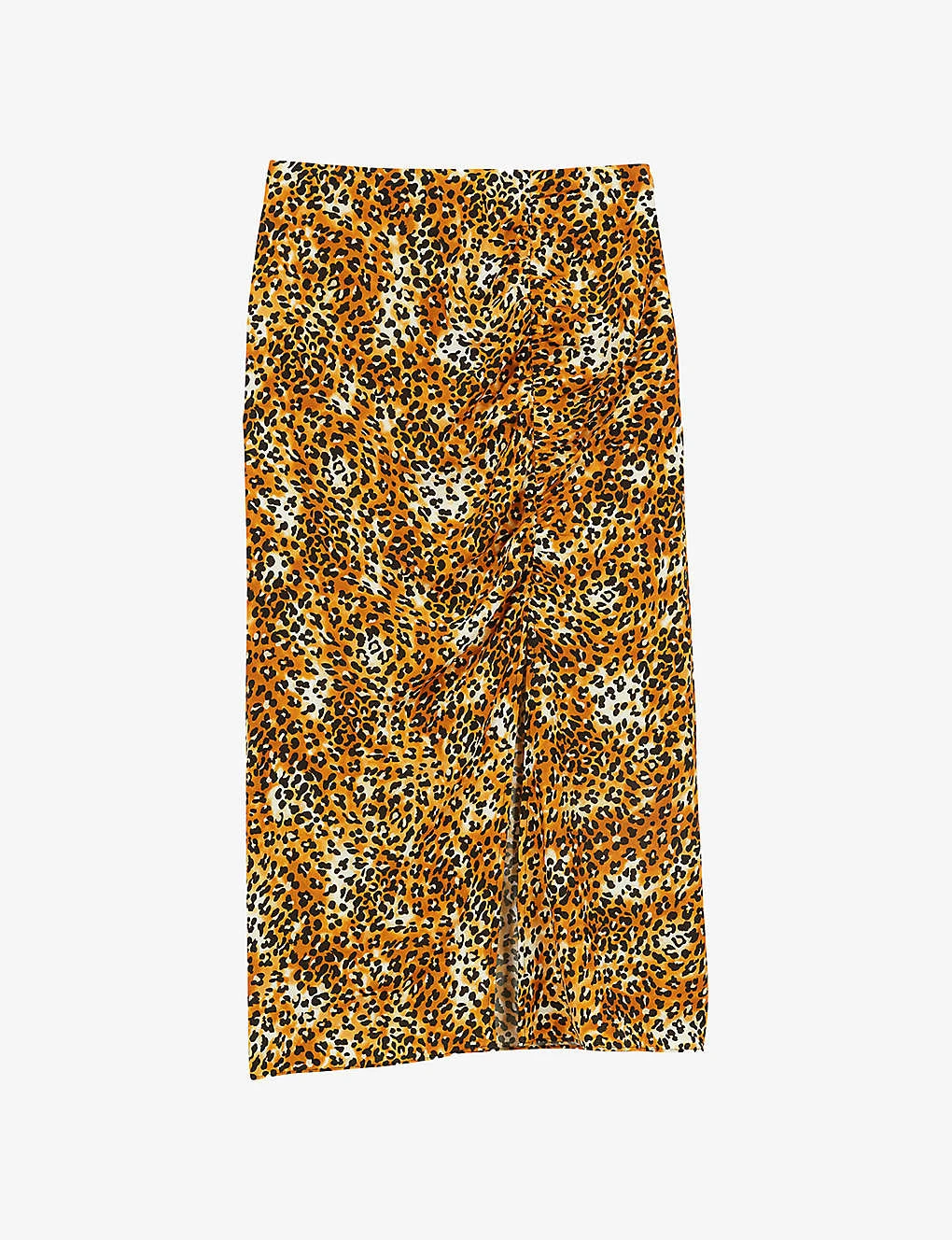 Maje Jipard Leopard-print Side-slit Woven Midi Skirt