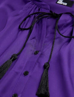 - Pointed collar, dropped shoulders, long sleeves, buttoned cuffs, all-over floral print, patch pocket at chest