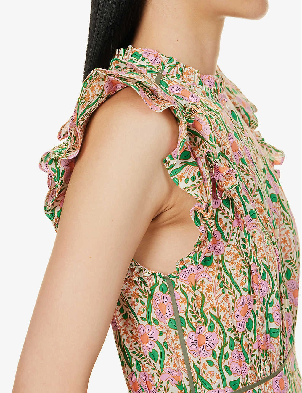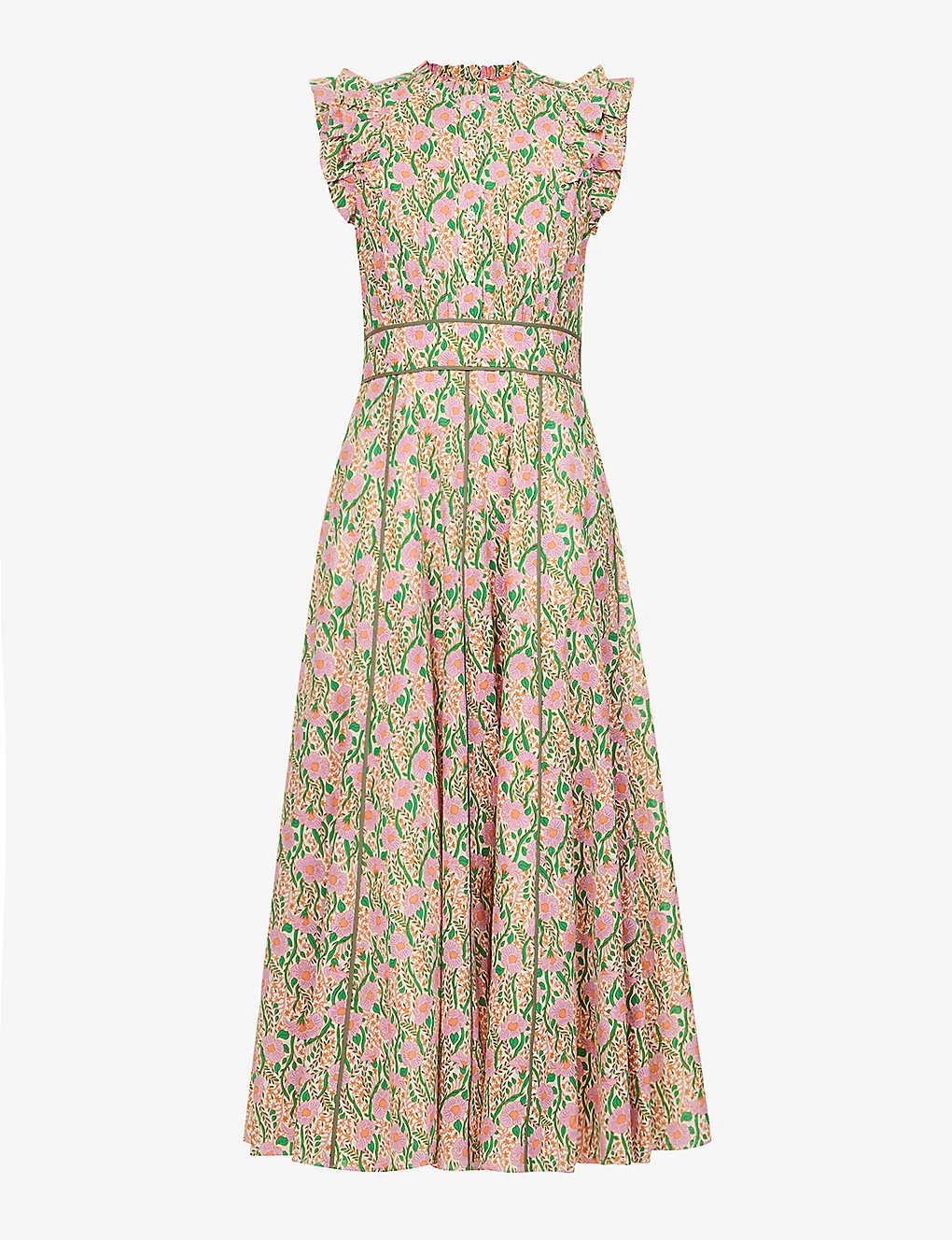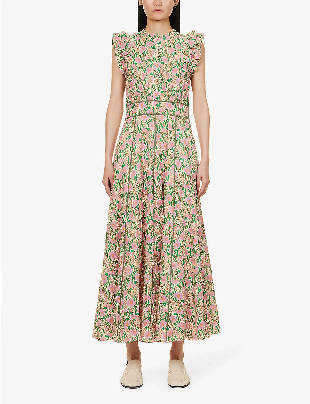 ME AND EM Floral-print Ruffle-trim Cotton Maxi Dress
