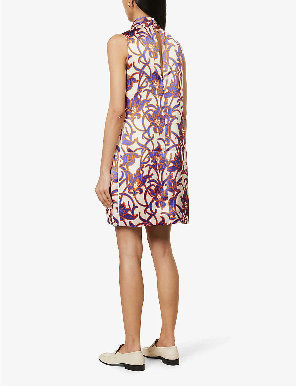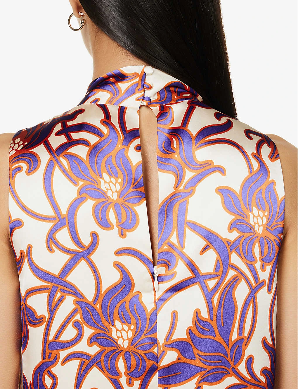 ME AND EM Graphic-print High-neck Satin Mini Dress