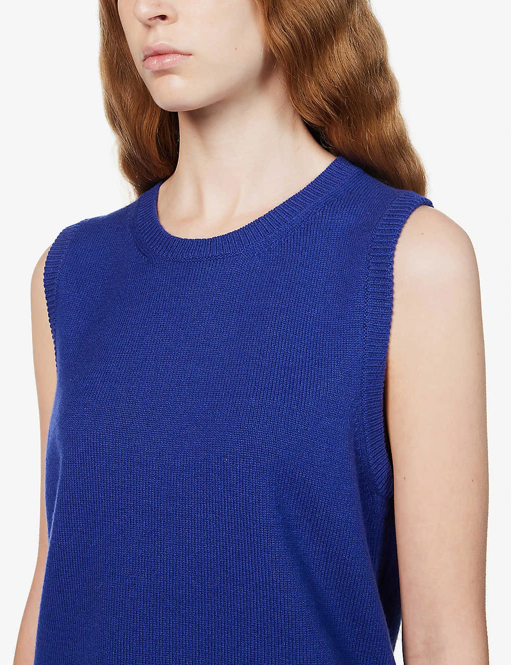 - Regular-fit, scoop neck, sleeveless, all-over medium knit, ribbed trims, notched hem