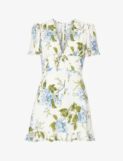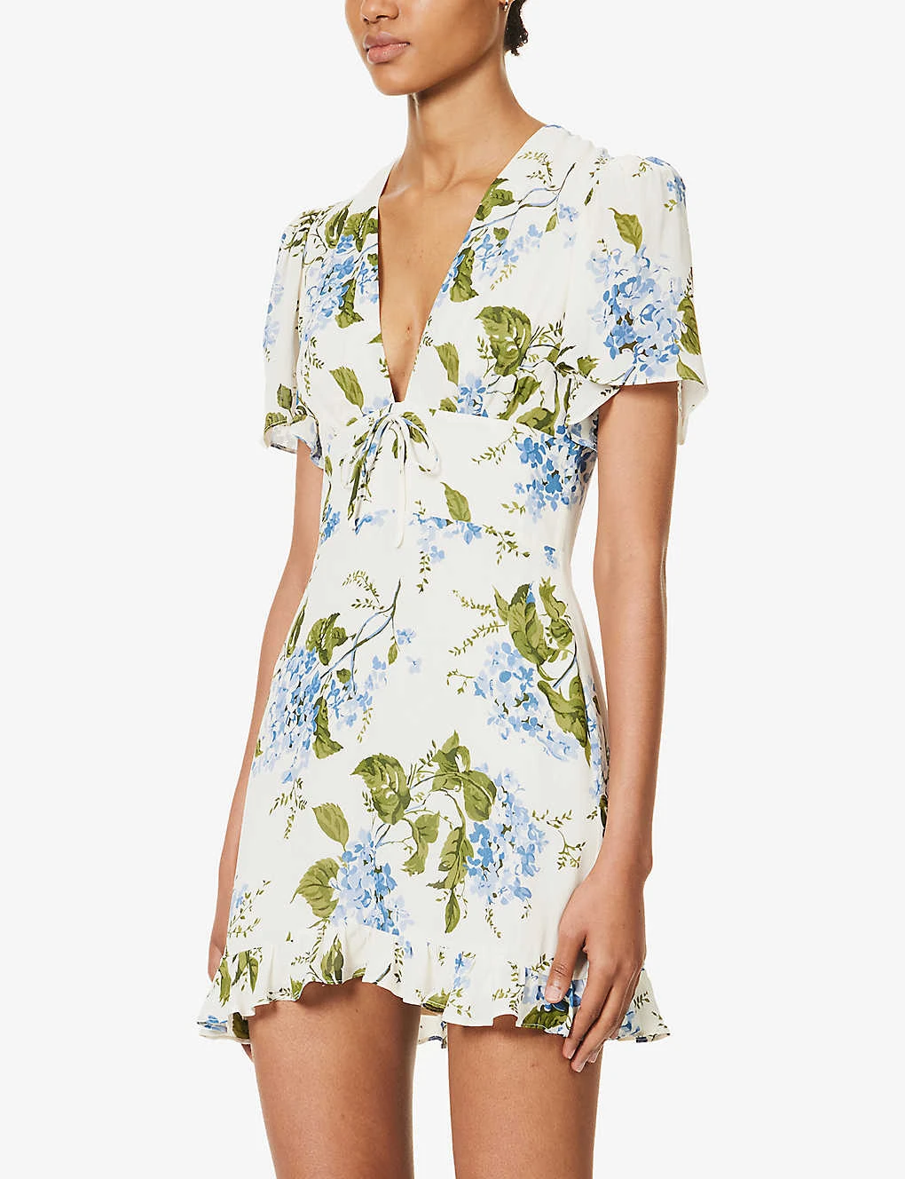 Mya V-neck Floral-pattern Crepe Mini Dress