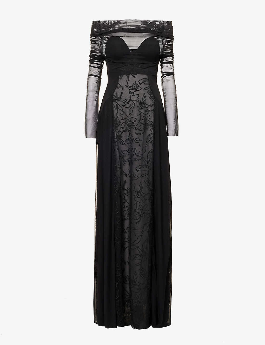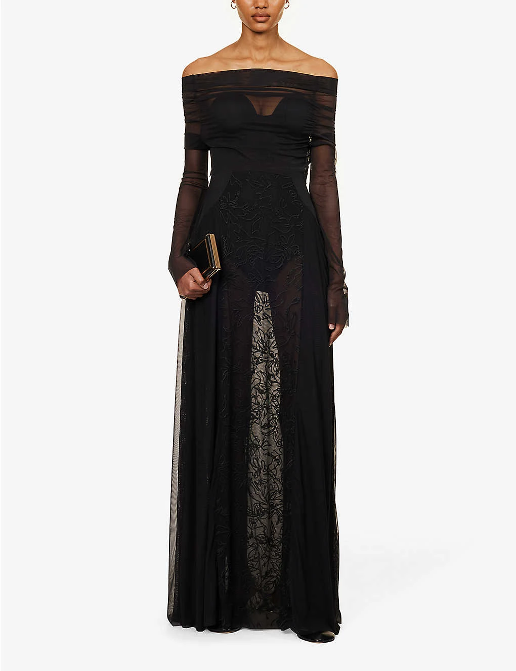 Nolana Boned Semi-sheer Stretch-mesh Maxi Dress