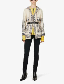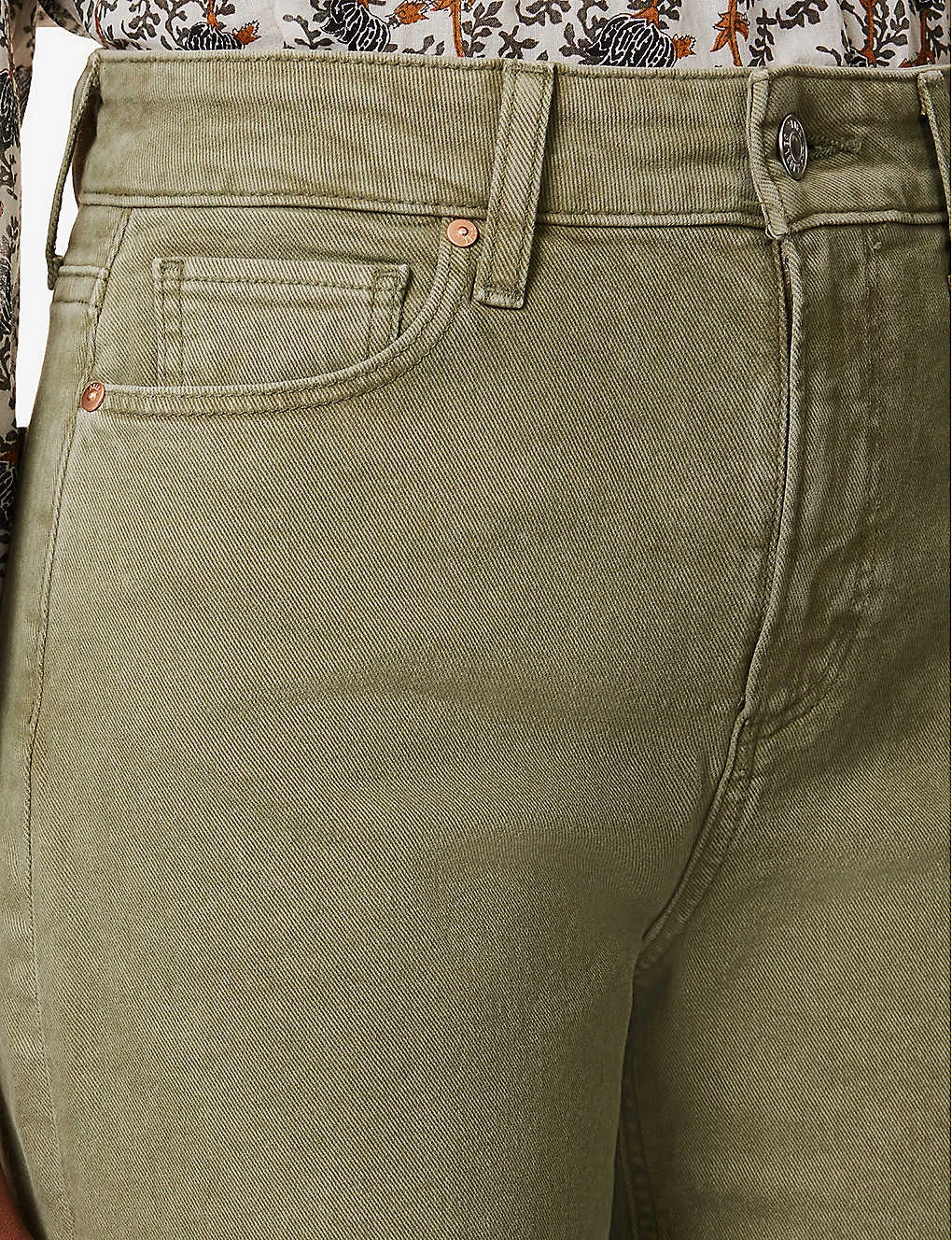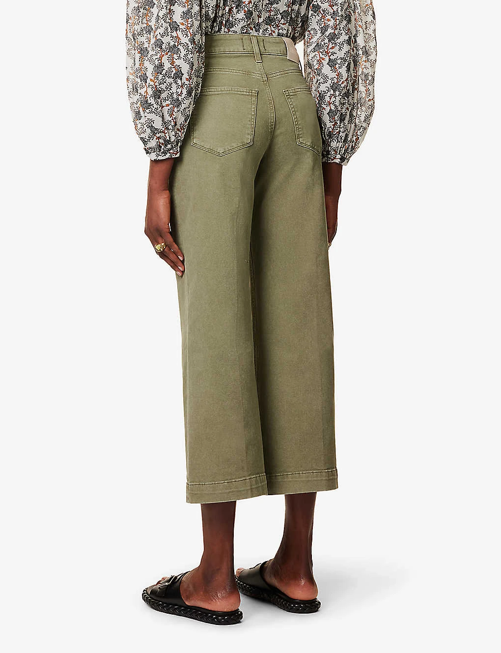 - Regular fit, mid-rise, wide leg, belt loops, branded silver-toned hardware, five pockets, pressed centre creases, cropped, brand patch at back