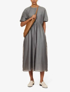 Ribes Gathered-waist Cotton And Silk-blend Maxi Dress
