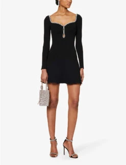 SELF PORTRAIT Diamante-embellished Ribbed-texture Knitted Mini Dress