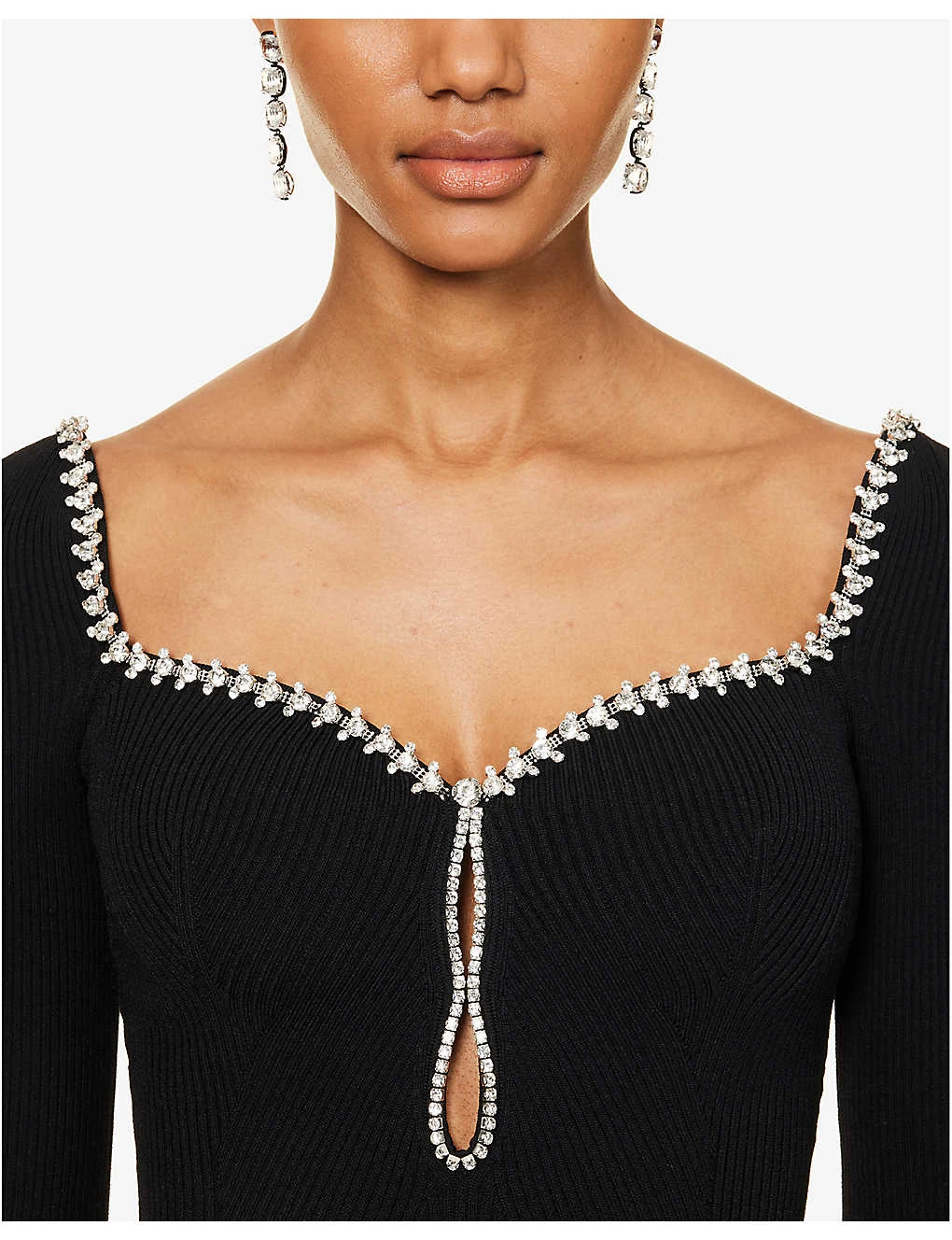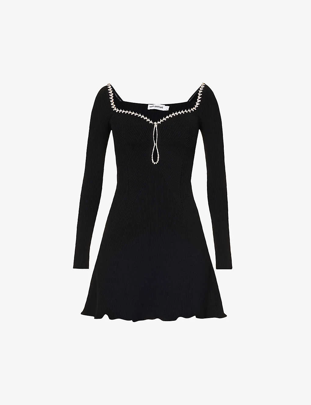 SELF PORTRAIT Diamante-embellished Ribbed-texture Knitted Mini Dress