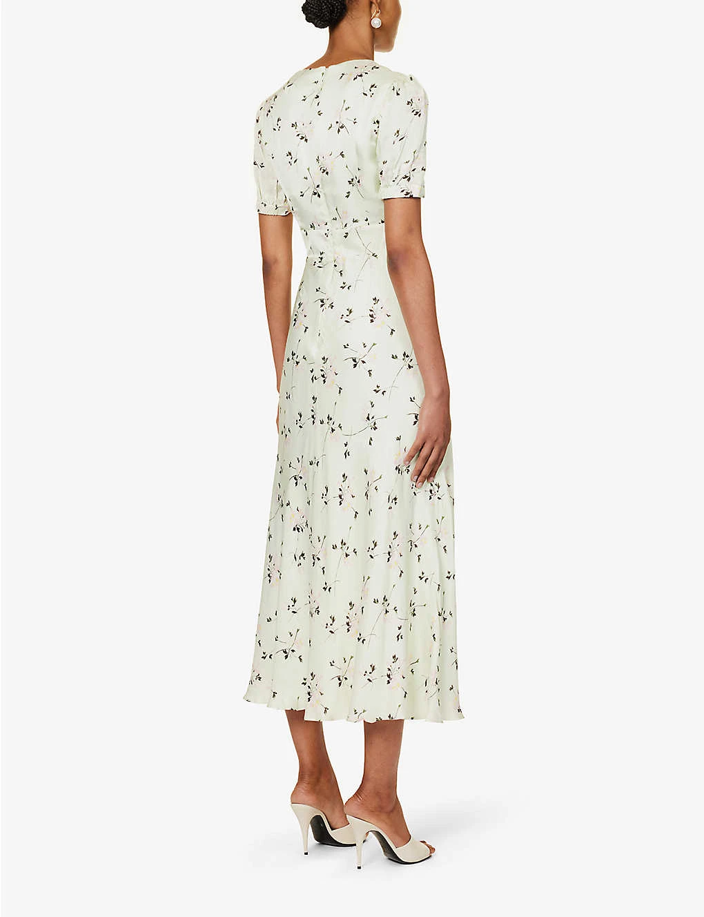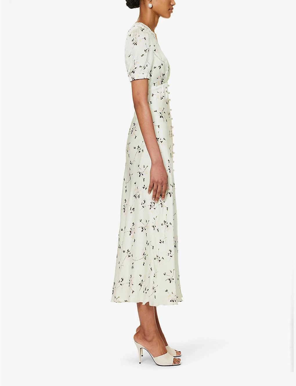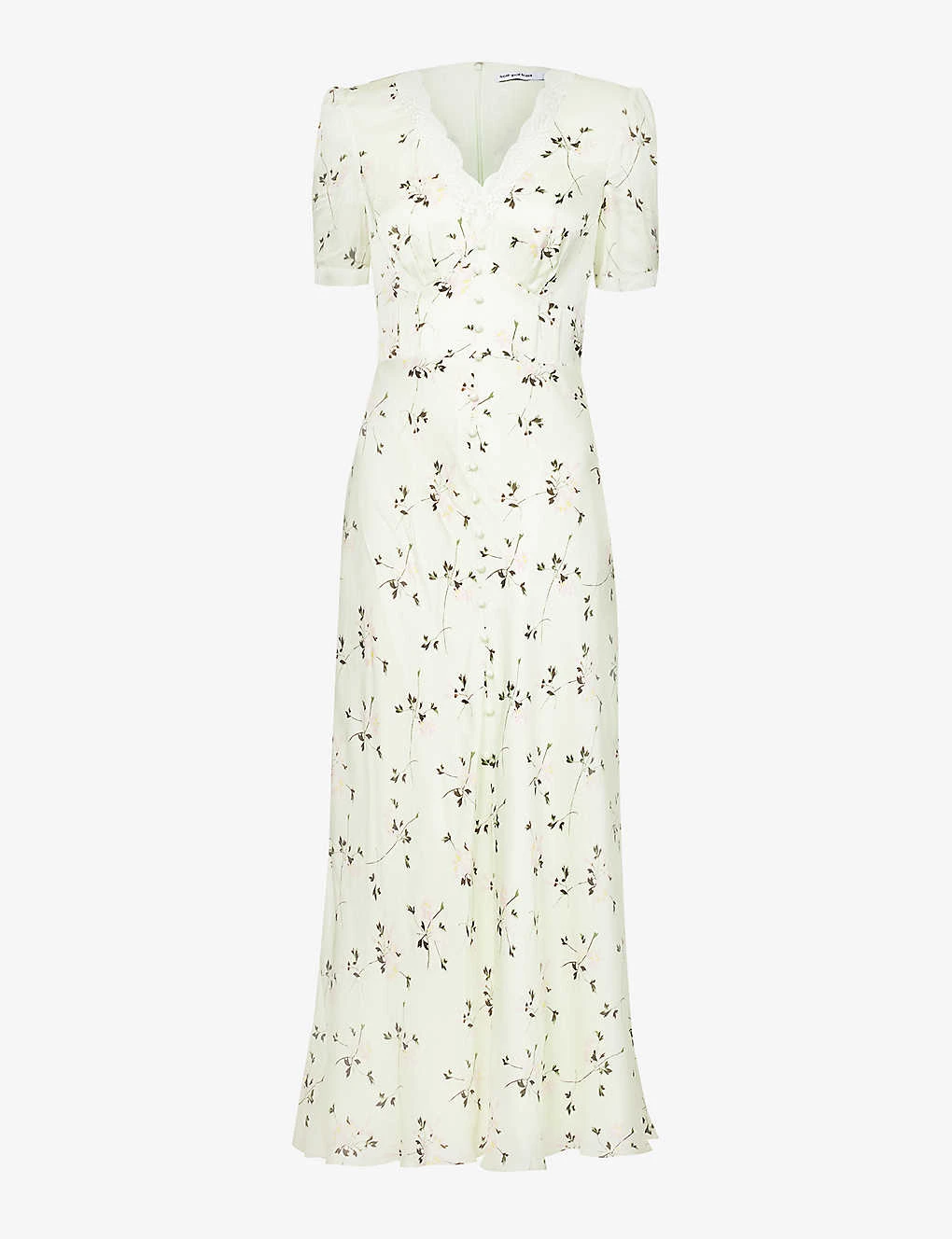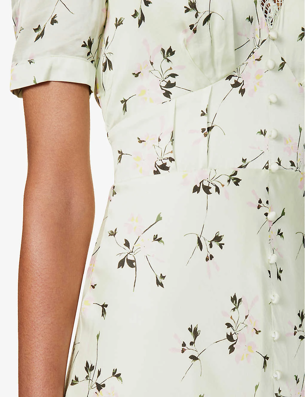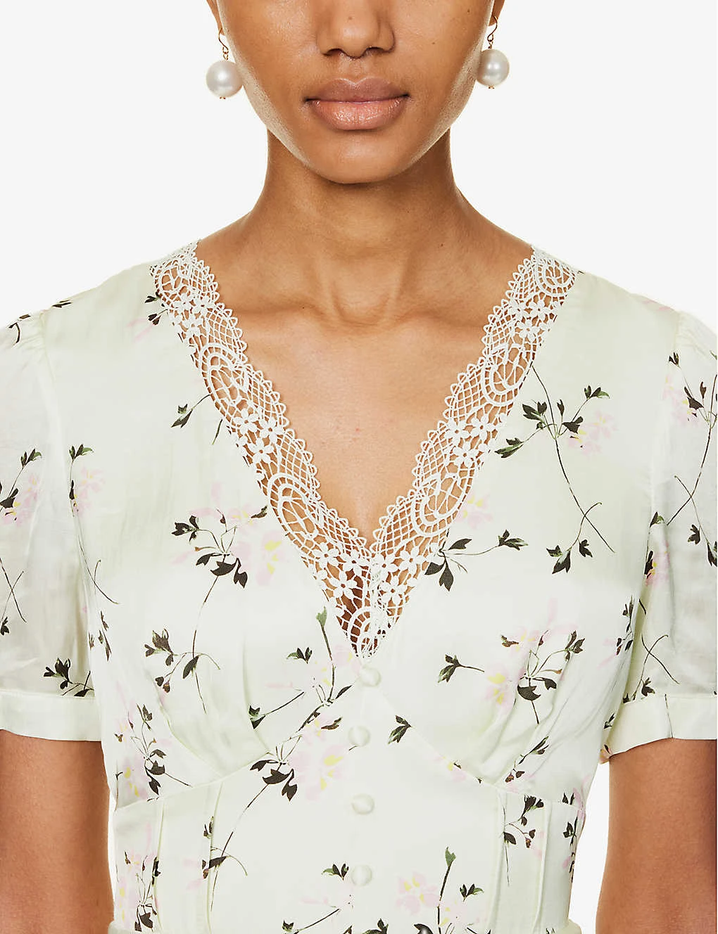 SELF PORTRAIT Floral-print Lace-trim Satin Midi Dress