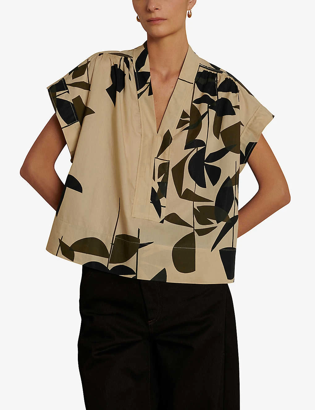 Soeur Madagascar Graphic-print V-neck Cotton Blouse