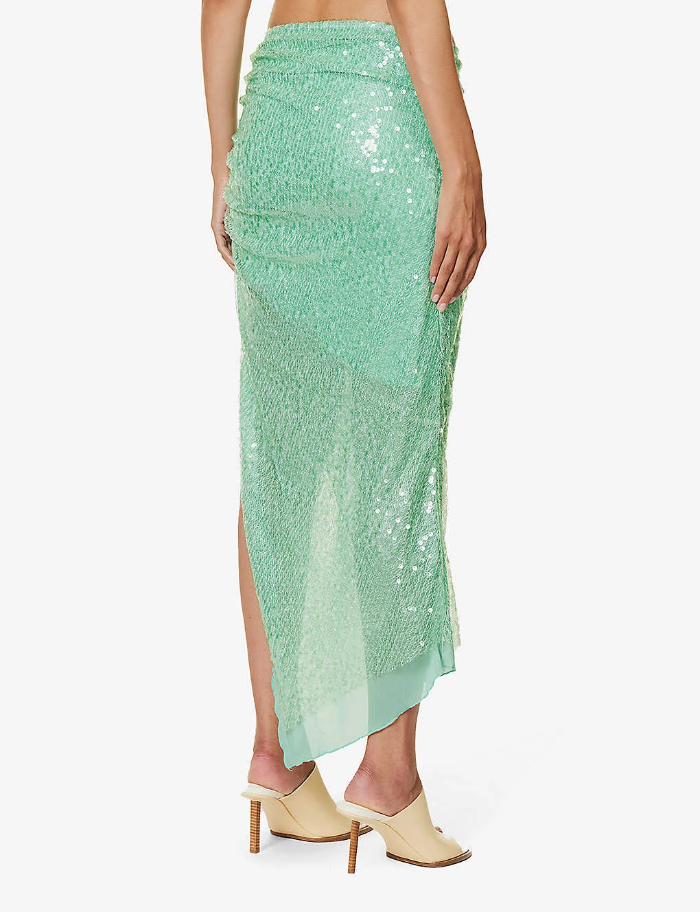 Splash Asymmetric-hem Sequin-embellished Woven Midi Skirt