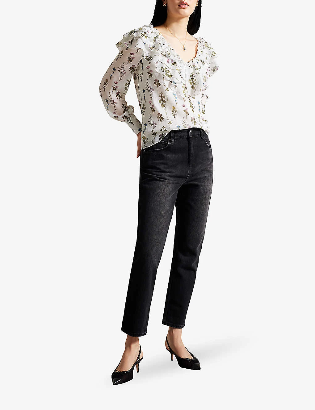 Ted Baker Avarose Frill-neck Floral-print Woven Blouse