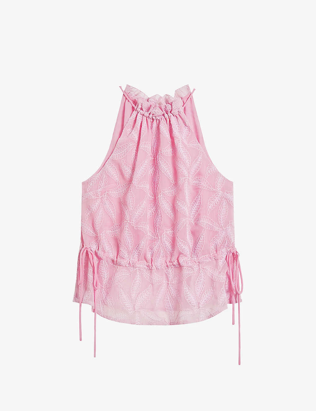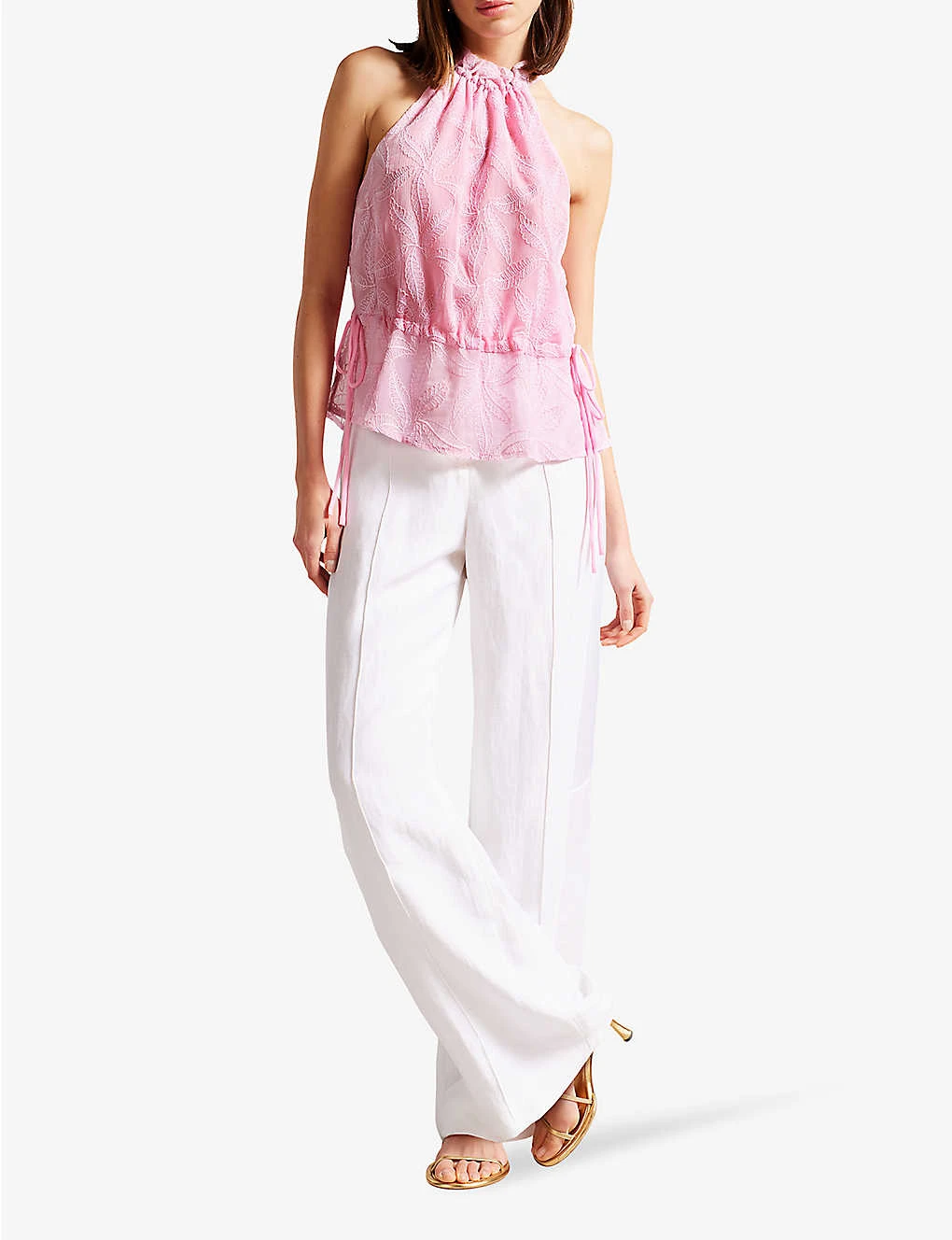 Ted Baker Ivieey Botanical-embroidered Halterneck Woven Top