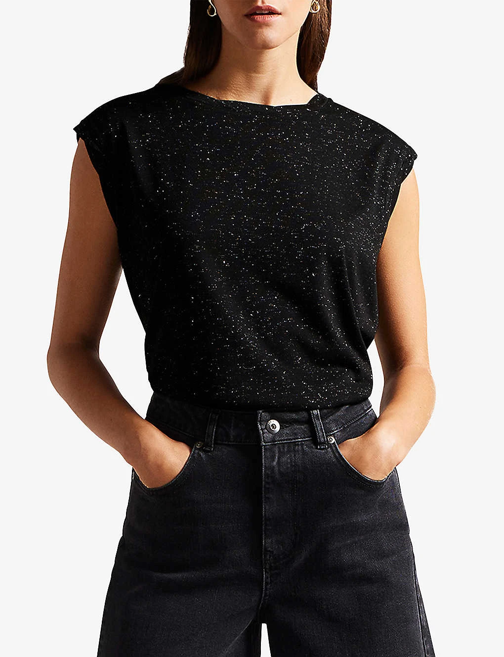 Be the first to review “Ted Baker Sheryil Twisted-neck Metallic-fibre Vest” Cancel reply