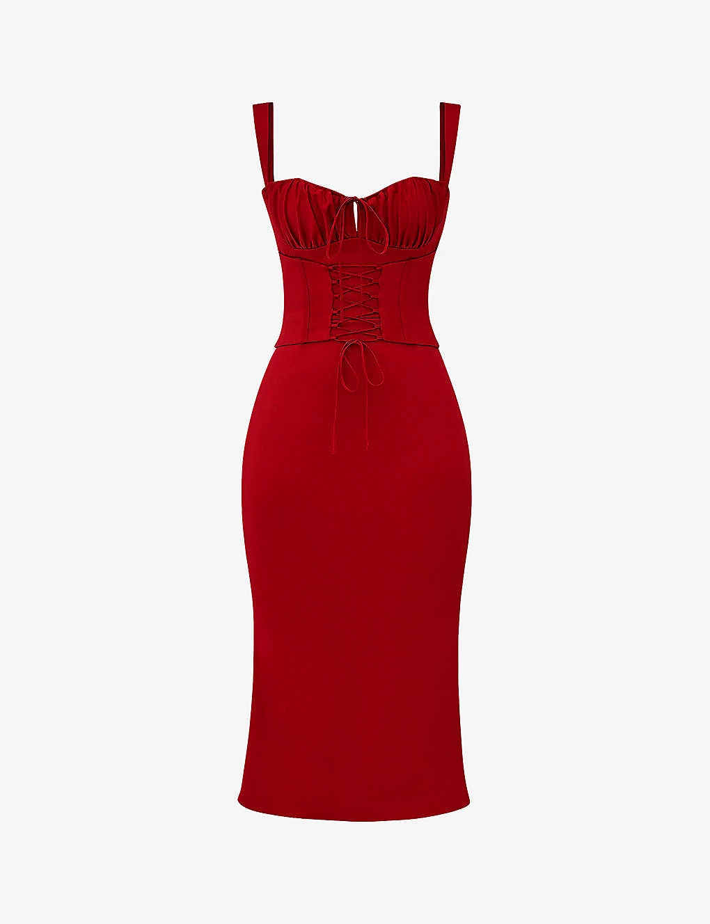 Be the first to review “Valencia Corset Satin Midi Dress” Cancel reply