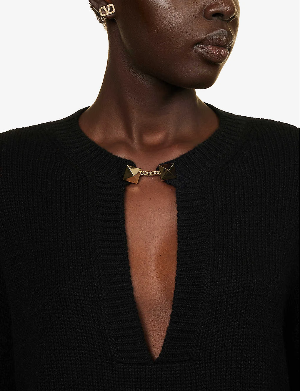 Valentino Cut-out Stud-embellished Cashmere Knitted Jumper