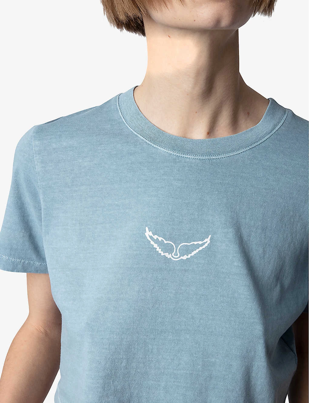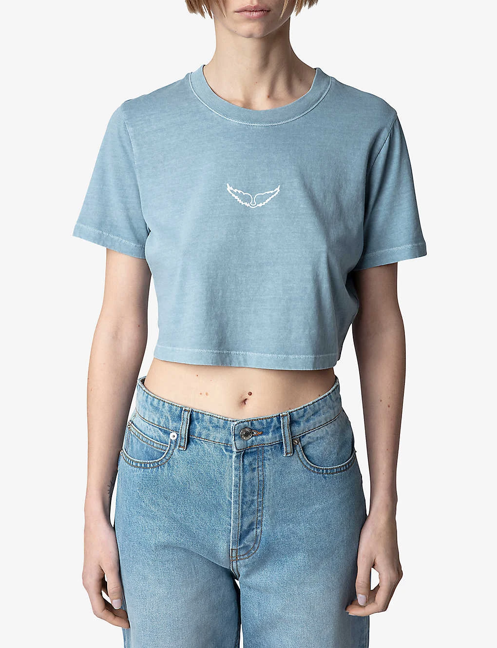 Zadig & Voltaire Carley Wings-print Organic-cotton Crop Top