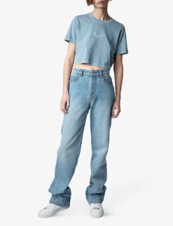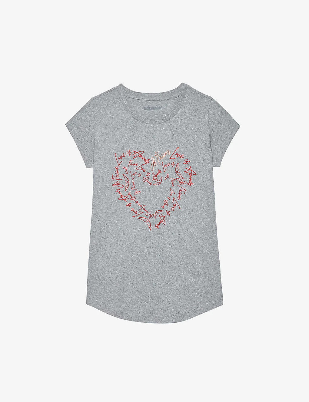 Zadig & Voltaire Skinny Heart Crystal-embellished Graphic-print Cotton-jersey T-shirt