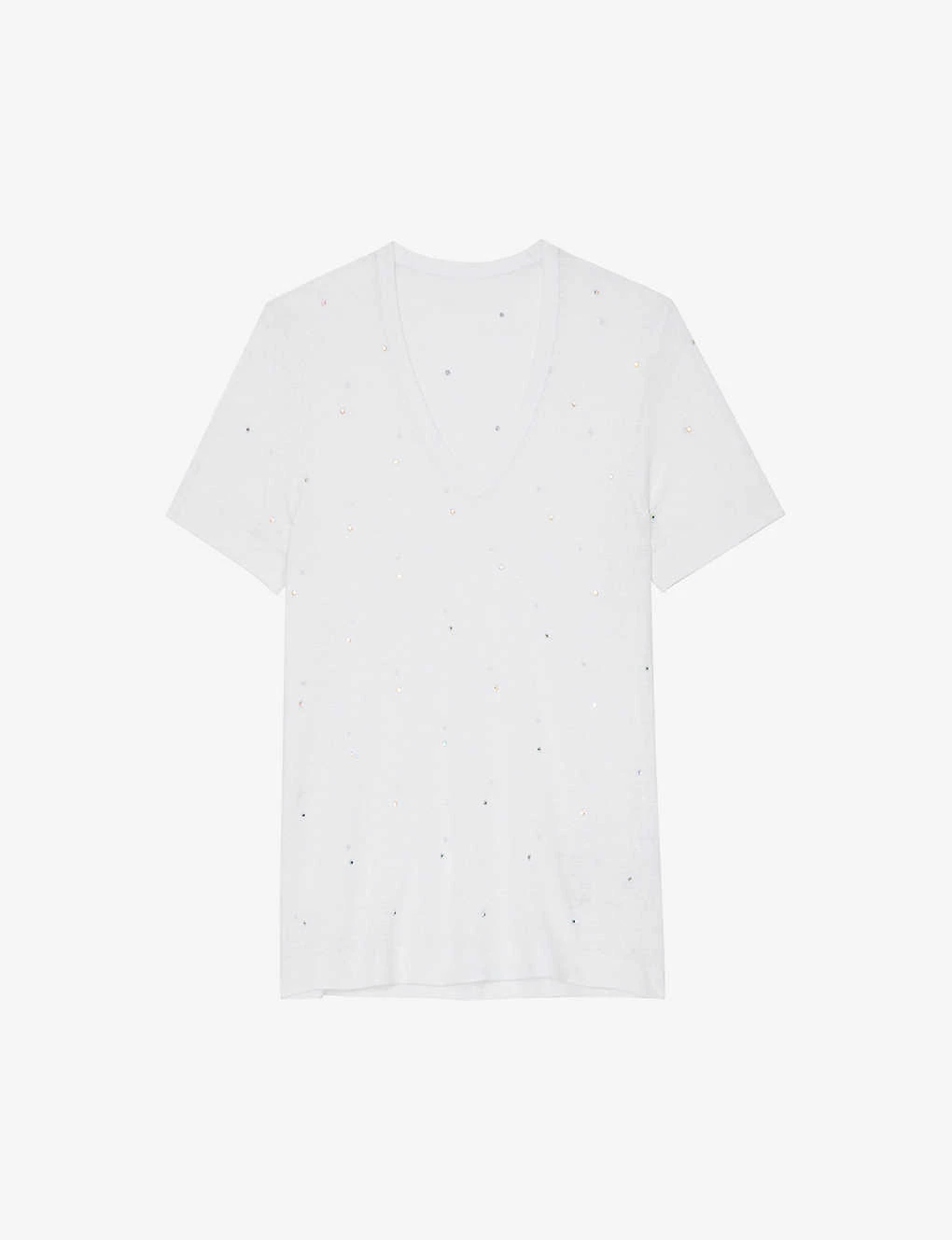 - Relaxed fit, V-neck, short sleeves, all-over crystal embellishment