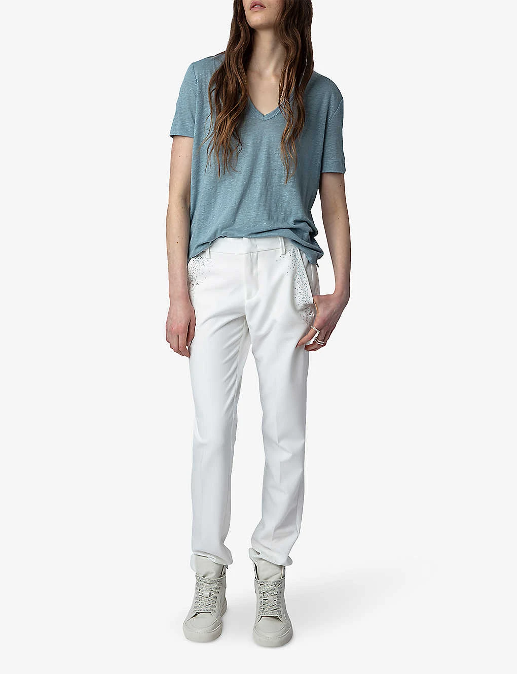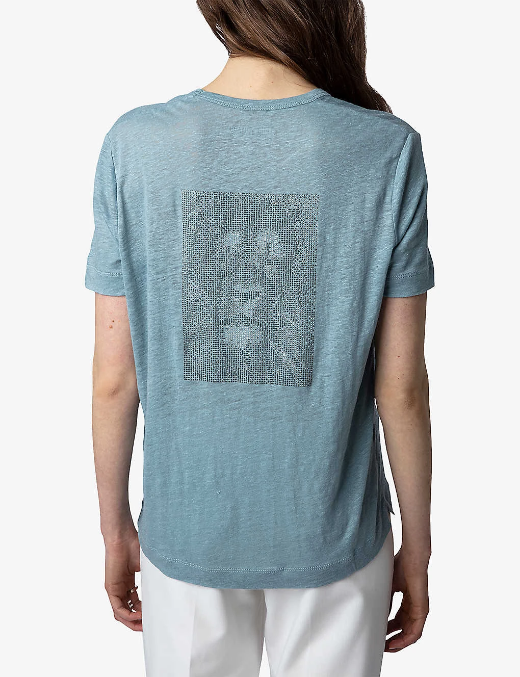 Zadig & Voltaire Wassa Rhinestone Lion-embellished Linen T-shirt