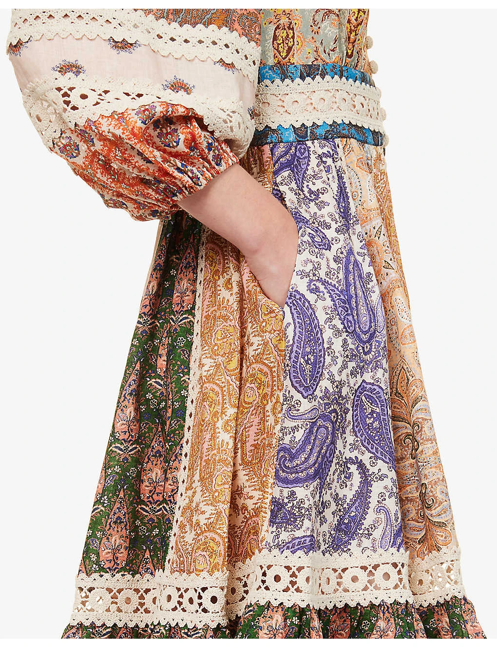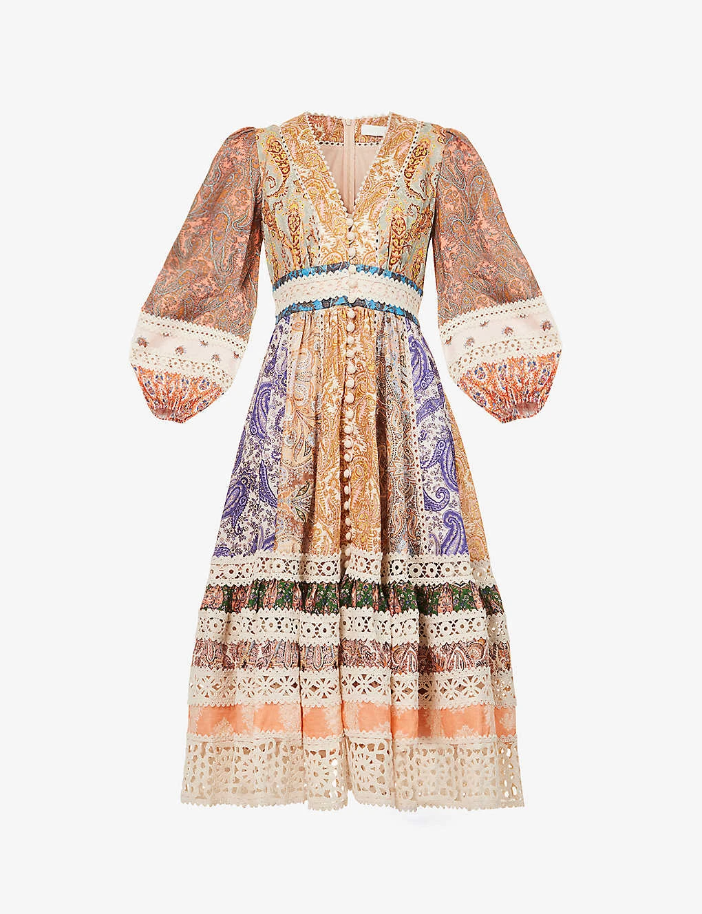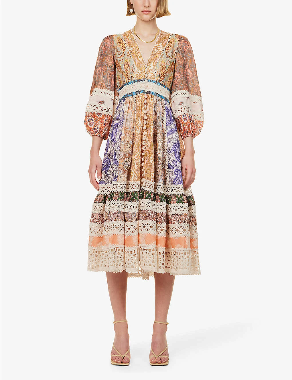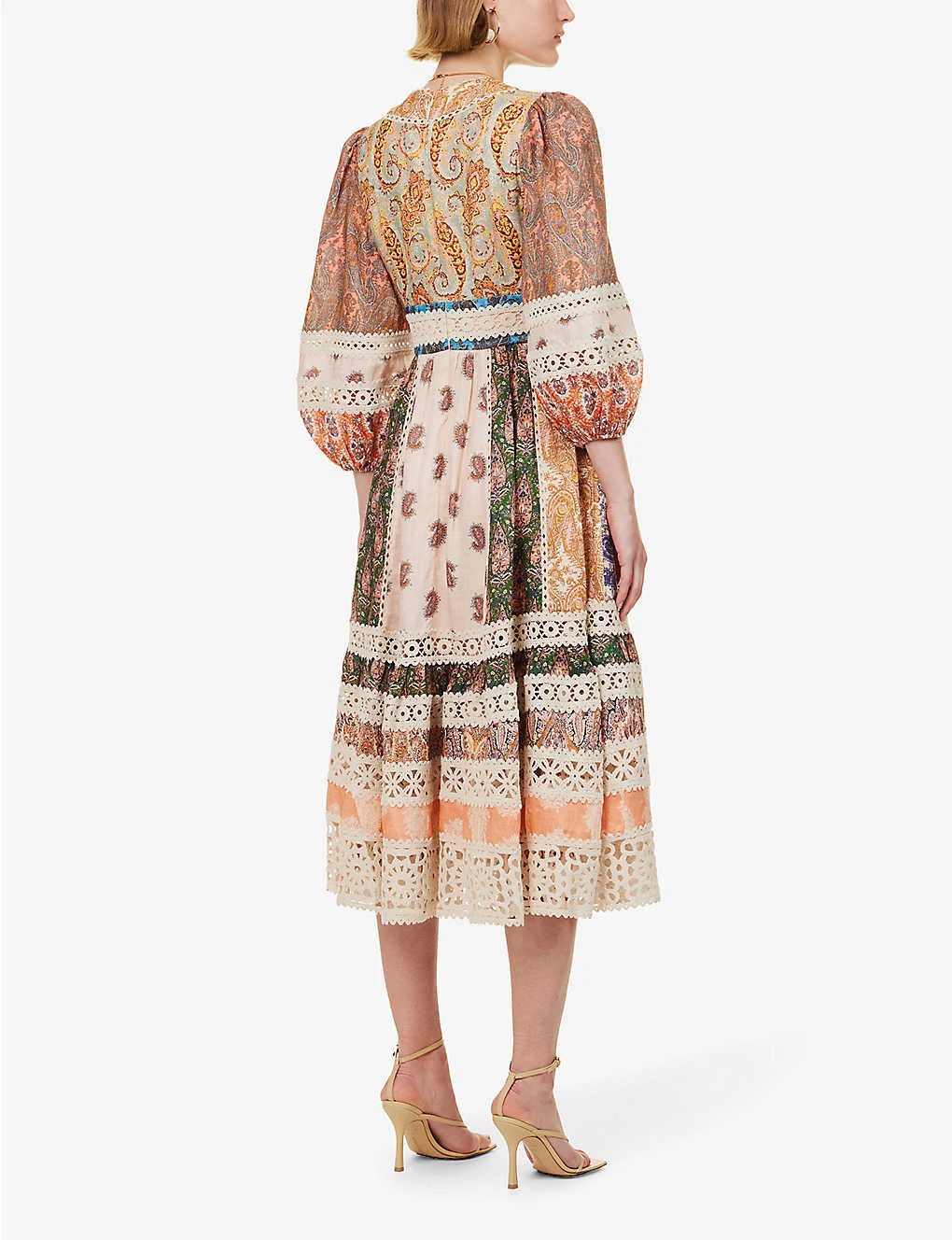 Zimmermann Devi Paisley-patterned Broderie-trim Regular-fit Linen Midi Dress