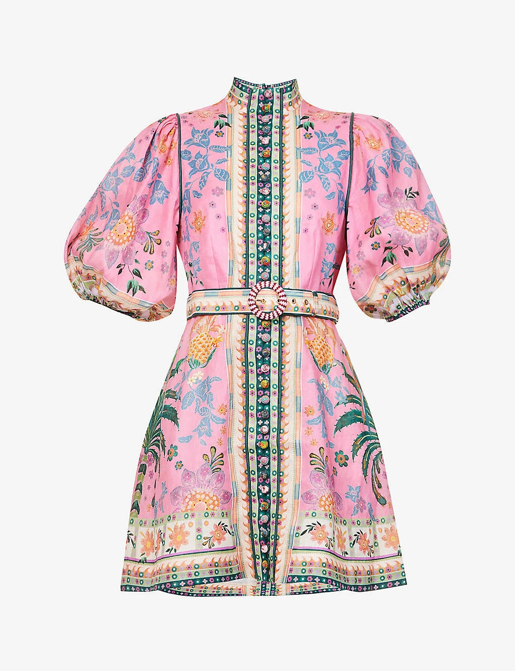 Zimmermann Ginger Floral-print Linen Mini Dress